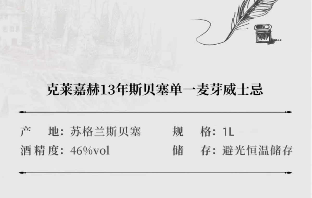 克莱嘉赫13年单一麦芽威士忌1L